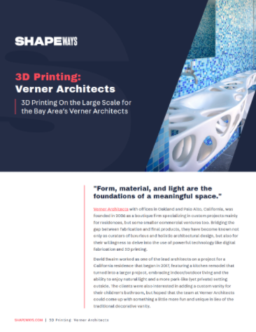 Verner Architects leveraged 3D printing to create a custom, six foot, bathroom vanity for a kids bathroom during a custom home design. The architect had the challenge of creating a unique design for a client while ensuring that the vanity would be durable, waterproof, all while being a statement piece in the bathroom. Find out more about this architectural 3D printed piece by downloading the case study.